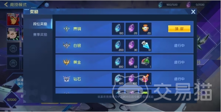 其中,青铜、白银、黄金、钻石四种段位采用积分制,积分范围从最低0分到最高100分,玩家在初始状态下,段位为青铜,初始分数为0分,当玩家在青铜、白银、黄金、钻石段位中通过不懈努力达到100分时,下一次获取胜利后,段位将会晋升至下一等级的0分,而圣皇段位则采用星级制,星级范围从最低0星到最高9999星。