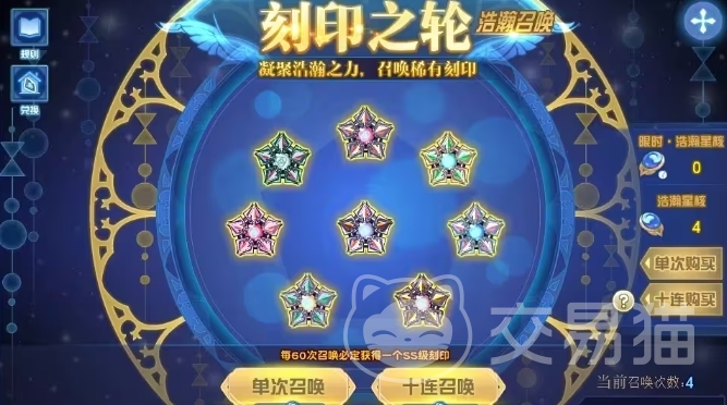对于钻石充足的玩家来说,可以考虑每天花费200钻石进行一次十连购买,这样每天都能够额外获得一个浩瀚星核,SS级刻印均属于九天系列,比如九霄之钟、九霄之灵等,这些刻印在同类型刻印中其实是可以替代之前的一些效果不错的刻印的,且就从数值上面看的话,跟后期大家升级过后的刻印效果相比,在数值上面也没有差到哪里去,就是获取比较难。