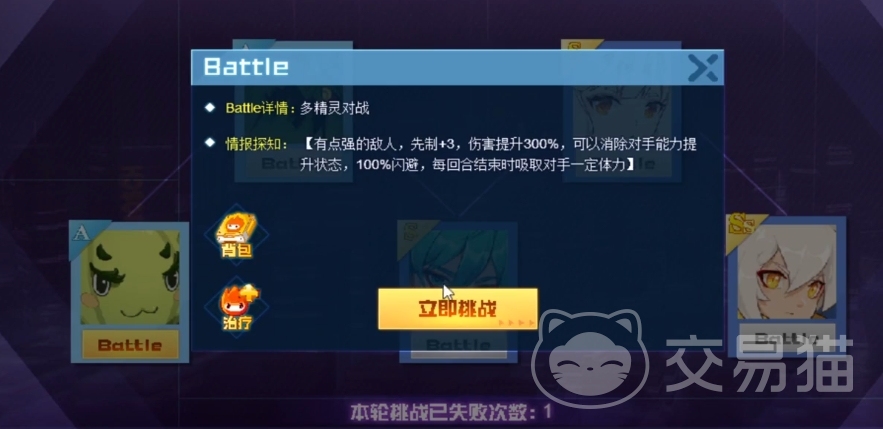 有些玩家这里翻车了两次,所以大家要注意,及时补点血药,所以还是建议用克制的精灵来慢慢磨血,至于第五只还是银翼吉光先打倒对手,强攻的话各位要根据自身实际情况量力而行,这第五只有60%的减伤效果,每回合还会清除我方2个技能的pp值,不过通过自爆与强攻的方式还是可行的,之后可以让1血高热冰冷塞勒涅单挑,最后圣普单挑,因为圣普要肉一点,这样才有可能顺利过关。