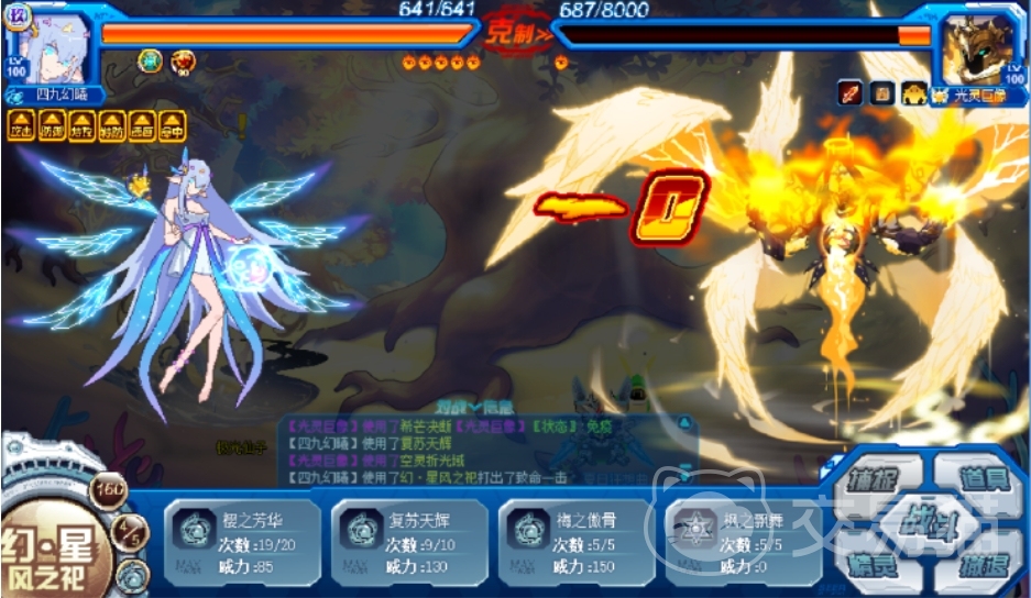 在4回合内,每回合都能恢复自身最大体力数值,让使用者保持良好的战斗状态,如果使用者的体力低于一半,还会附加等量固定伤害,增加对敌人的输出,而且,使用光灵守望后,下2回合自身所有技能先制+2,使得使用者在战斗中能够更快地发动攻击,浮虚光翼闪作为她的第五技能,它可以消除对手的回合类效果,消除成功后,自身下2回合造成的伤害会提高100%,同时会令对手失神,使敌人无法正常行动,如果未触发失神效果,则会随机吸取对手2项属性-2,并将这些属性附加给自己,即使未能击败对手,也能附加对手双防之和35%的固定伤害哦。