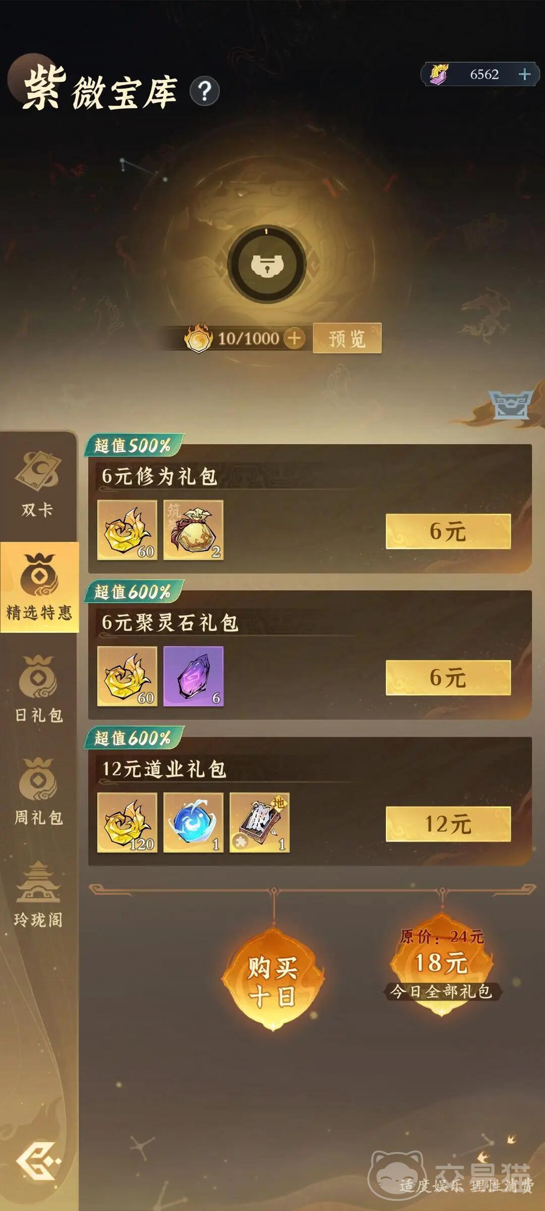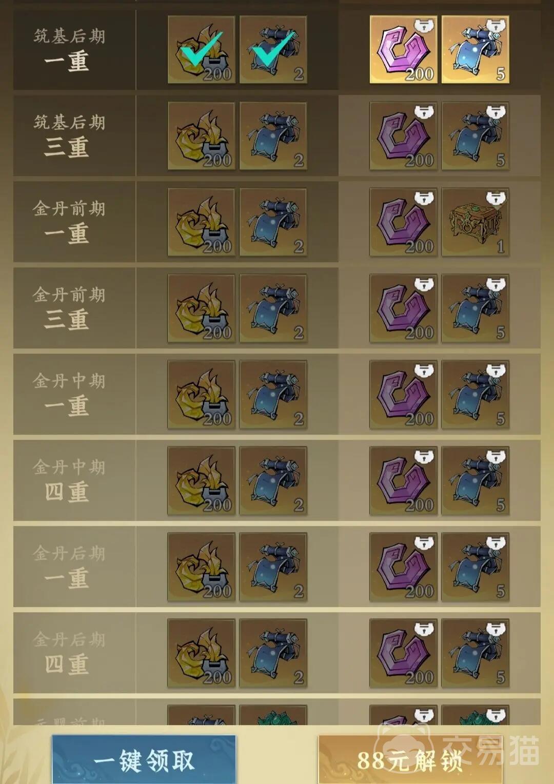 其次要推荐的,就是境界的奖励了,你每提升一些境界,就有资源的补贴可以领取。如果玩家不氪金的话,就没法解锁高级版后面上锁的内容。88元虽然说并不便宜,但是也是很值得的付出。而小编剩下要推荐的,就是紫薇宝库里的礼包。如果你资金有限,那就只选择18元的那一款,氪佬自然是多多益善了。