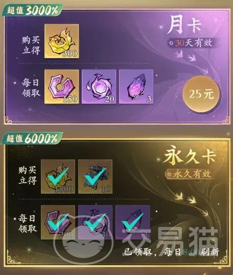 首先,最值得玩家去付费的东西就是月卡和永久卡了。这两种选择的优势不言而喻,是整个游戏当中综合收益最多的,当玩家购买了它们之后,就能获得细水长流的资源。每天的日常累积下来,收益可以说是巨量的了。除此以外,首充的6元礼包也建议拿下, 这一礼包的内容,会分三天发放给玩家,在前期是很有用的。