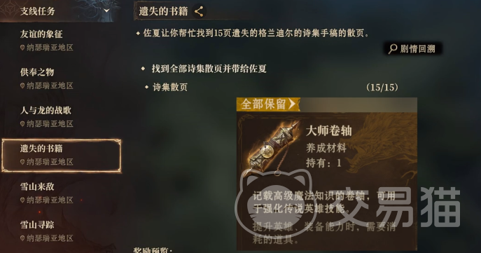 玩家还可以进入到斯塔兰的告诫所,在完成交互之后也可以获取,接着玩家可以进入恒归之境在这里选择深入的探索,在经过探索之后可以看到有一个宝箱。总之这一路走过来就可以看到有多个不一样的散页在收集之后凑齐所有的数量,就能够迅速的完成任务。一般在凑齐15个之后就可以回到一开始的地方提交任务,在提交完毕之后就可以获取大师卷轴奖励。