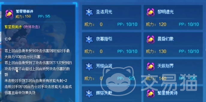 尽管尤莉米特的克制倍数介于0.5,1.5之间,并未达到极致,但她凭借这一技能与战术运用,依然能够在平地战斗中对敌方满体精灵构成威胁,尤莉米特的第五技能千华觅月歌,以其独特的命中机制与效果划分,这个技能根据使用结果是否命中来触发不同的效果,而其内置的0%命中率设定,使得在缺乏必中buff的情况下,往往只能打出miss。