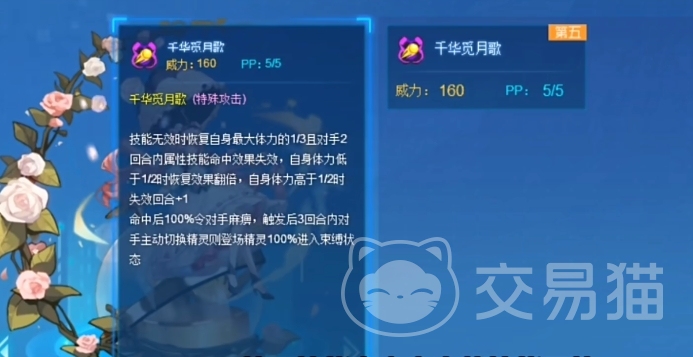 当千华觅月歌打出miss时,它会根据尤莉米特当前的体力状态,给对方精灵施加不同回合的封属效果,并相应地恢复体力,这种封属效果还能有效抑制敌方依赖属性技能的精灵,而当该技能成功命中并打出伤害时,它会执行麻痹行动异常效果,并赋予尤莉米特一个独特的效果,对方主动切换精灵时,下一只精灵将被束缚,这种双重效果让千华觅月歌在战斗中不仅能够控制敌方行动,还能为己方创造反击的机会。