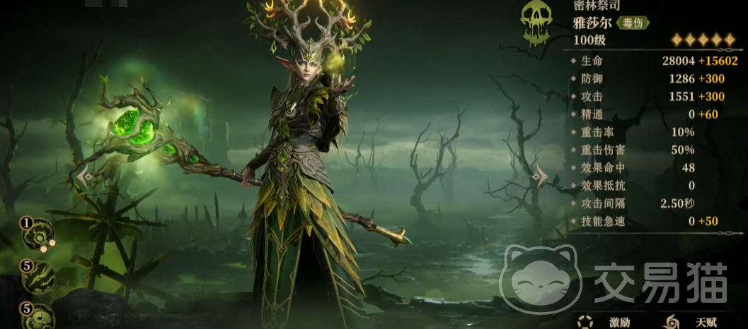 她是魔力出众的德鲁伊,五维各项属性数值都十分的优秀,魔力值和狂热尤其突出,以往提到木系精灵,大家可能觉得和治愈有关,但是她却是极具杀伤力的毒伤结算者。战技”刚愎”,使用后对单个目标攻击三次,每次攻击敌人都受到毒素伤害,同时有很大概率施加一层“毒伤”效果。