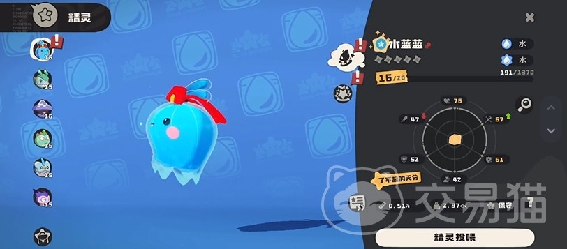 水蓝蓝是水属性的辅助精灵,具有出色的治疗和辅助能力,其独特的能量恢复特性,使得使用水系技能后,所有技能的能量消耗降低,极大提高了战斗中的可持续性和策略性。水蓝蓝不仅能够为队友提供有效的治疗,还能通过增加自身和队友的防御力来提升团队的生存能力,是偏好团队合作和策略玩法玩家的理想选择。