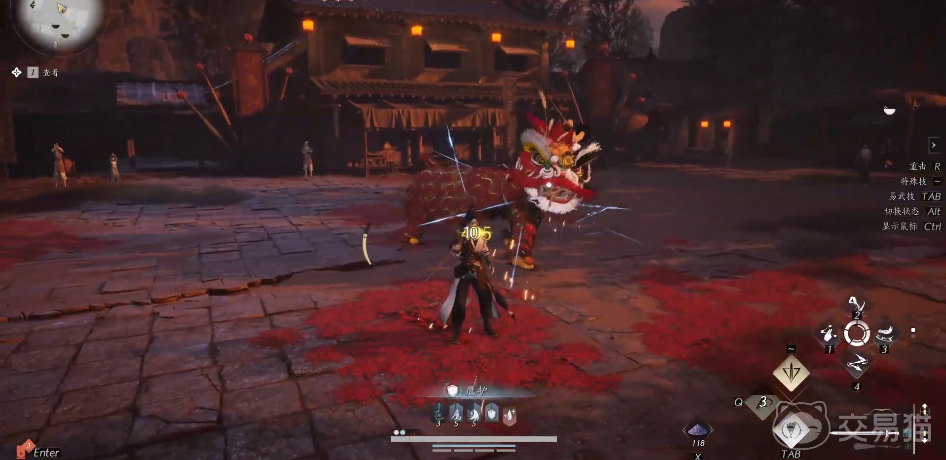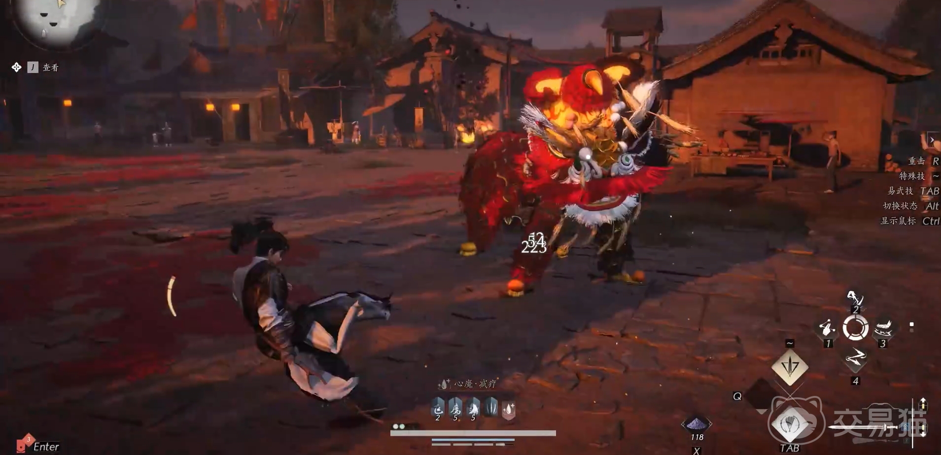 舞狮是一个两阶段的boss,在第一条命时他会较为频繁地与玩家进行近身接触,在攻击招式上都有着极其明显的起手动作,因而只要看他的狮头昂起就要注意进行卸势,慢慢将他的蓝条给磨掉后就能全力进行输出了。在该阶段他还会释放火箭、火球等来攻击玩家,不难躲开。