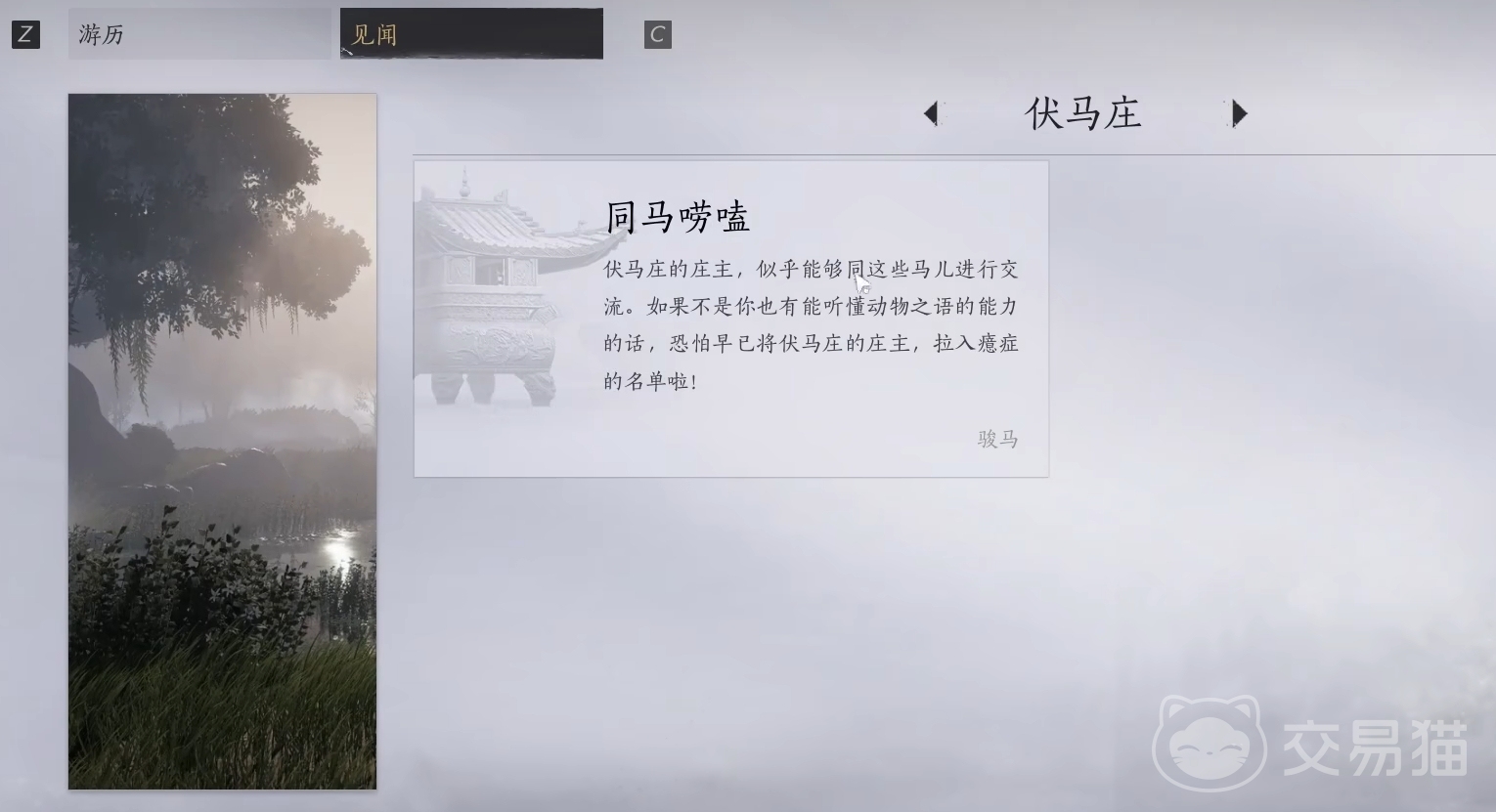 本篇要说的是燕云十六声伏马庄见闻完成方法。伏马庄目前只有一个见闻,而且这个见闻非常容易完成,快的玩家大概也就只需花上不到两分钟的时间,就能把这个见闻给解锁了,进而为人们带来探索度的增长。如果大伙还没有完成伏马庄的见闻,可跟着小编一同来看看该怎么做。