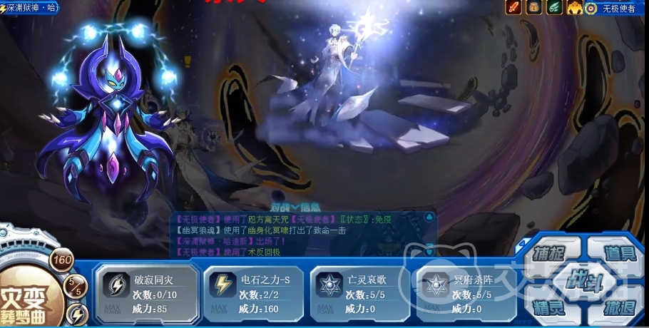无极使者在回合开始时,会根据自身的体力状况获得不同的增益效果,若自身为满体力,当回合自身所有技能先制+1,这能让它在出手顺序上优先于对手,提前发动攻击或技能,若自身不为满体力,当回合受到的攻击伤害额外减少50%,每减少1点攻击伤害,自身下次攻击附加1点固定伤害,而在配招方面,有多个技能可供玩家选择搭配。