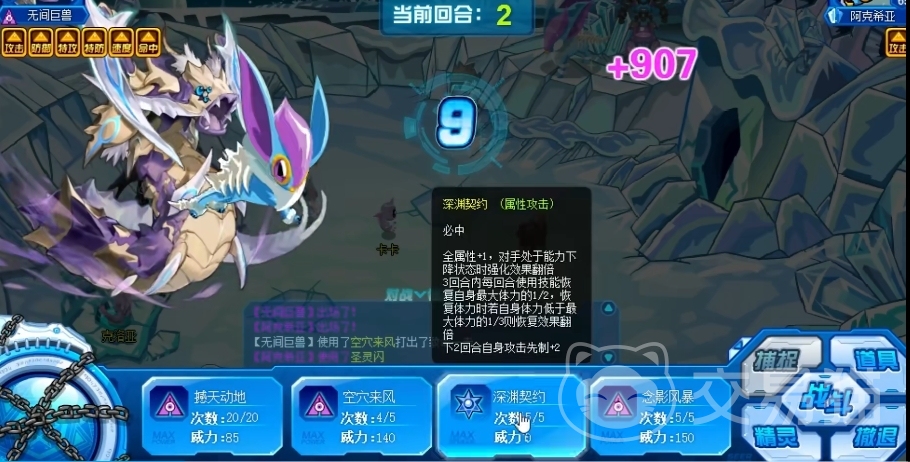 它是必中的技能保证了释放的成功率,当技能使用成功时,会改变对手的防御等级和特防等级,与之前的技能不同的是,它会使对手防御等级-3且特防等级-3,如果在使用这个技能时打出致命一击,那么所造成的伤害值的100%会恢复自身体力,此外还会附加对手当前体力20%的伤害。