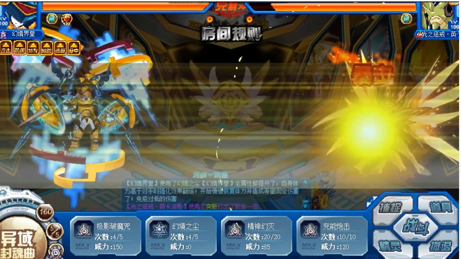 至于它的大招,大家在了解之前需要先来关注一下它前一形态的大招,其最低伤害能达到 280,不过这个数字本身并没有太值得深入探讨的意义,因为这个大招附带了一个每回合特工速度+1的特效,非属性的强化能够稳步提升幻境界皇自身的输出能力,进而为其后期在战斗中的生存与发展提供有力保障,不过需要注意的是,如果对方采用偷强化的战术,尤其是面对此类boss时,这个原本有利的技能反而会成为拖累。
