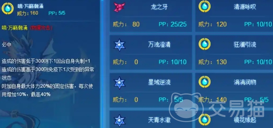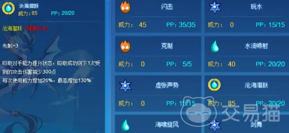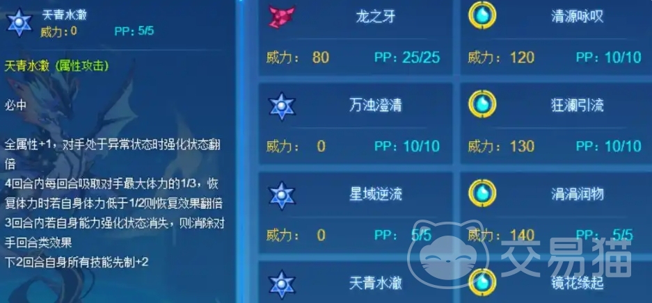 在技能方面,沧海潜跃无疑是青啼的核心技能之一,这个技能拥有先制+3 的效果,它可以吸取对手的能力提升状态,一旦吸取成功,下一次受到的攻击伤害将会减少300点,而且每次使用沧海潜跃技能,其威力都会增加26%,最高可增加至130%,即威力最大可达到原本的1.3倍,但该技能也偷强成功后的造盾续航能力较差,如果先制+3的效果是直接无条件提供300点减伤,而非当前的吸取对手能力提升状态才触发减伤机制。