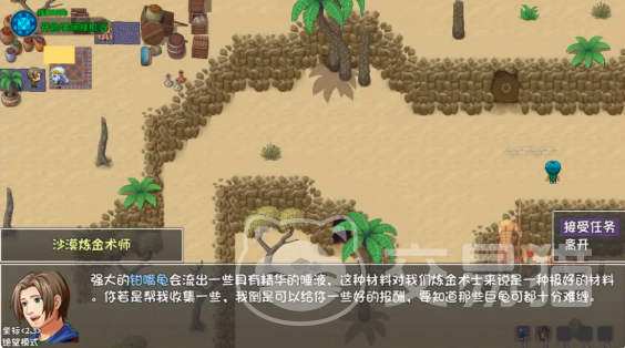 第三个部分,聚硅唾液和沙棘花来到地图左上角与沙漠炼金术士对话就可以接取该任务,在成功击杀巨龟boss后可以获得五个巨龟唾液前往本层的副本里有一只必刷巨龟,能够掉落食谱美味风蛇和一些道具,成功打败boss不死者扎卡尔会掉落十个沙棘花,完成任务后交给炼金术师则可以获得戒指伟大的炼金。