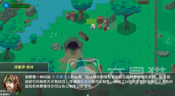 第二个主要任务是安抚森林玩家,可以在本层右上方遇到一个名为德鲁伊的角色,点击之后可以开启任务。在任务开启后就可以自动学会平静药水的制作,直接点击菜单就可以看到该药水在本层刷怪后就可以获得,做好药水之后再次交给德鲁伊就算完成任务了。