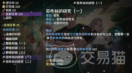 第一个大的任务是哥布林的研究目前在该任务当中分为两个阶段,第一阶段玩家需要先与学者对话,并且接受他的相关任务内容就是寻找到十个哥布林的手骨。成功寻找到手骨后,将这些手骨再次交给哥布林,学者与他完成第二次对话,就可以接收到第二阶段的哥布林的研究任务内容了。也就是收获十个沉沦魔手骨方法也非常简单,进入到染血的村庄的森林当中,击杀小怪,并且将这些手骨交给学者即可完成任务。