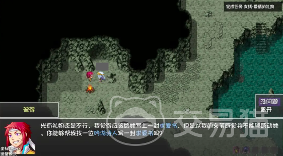 完成该部分任务内容后,继续向右侧走在右下角的山洞当中,可以与光头对话,激活仪式的项链,爱情的礼物这一任务内容,之后朝着小编在下图标明的山洞里面行走,可以在这里遇到商人卖铁汁和好果汁的,紧接着前往落霜洞窟,在这里可以和彼得进行对话,开启任务爱情的礼物,需要玩家获得十个寒霜草,接着进入到洛双洞窟的第二层,向右上的岔路口前行则可以搜索尸体获得地图风车村,来到第三层就会遇到NPC备课,在这里成功救下贝克,打败哥布林,然后返回洛霜洞窟的第一层就会发现水消失了,在这里直接前往隐藏区域就能够获得魔法水晶球,传送回本层的沙滩,将遗失的戒指和寒霜草交给彼得。