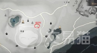 拿到后需要回到丹崖传送点,然后往右上边出发,来到右上边道路的旁边,来到这里后需要在该区域多转悠去寻找藏起来的药瓶,实在找不到的话可以用探查,在找到后就可以前往最后一个区域了。
