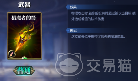 建议大家给他携带上猎魔者的箭和秩序之光,猎魔者的箭作为主要输出手段,再拉开牌差后,利用其效果对敌人额外造成牌差值的法术伤害,而秩序之光可以让其手牌上限再增加三张,进一步拉开手牌差距。