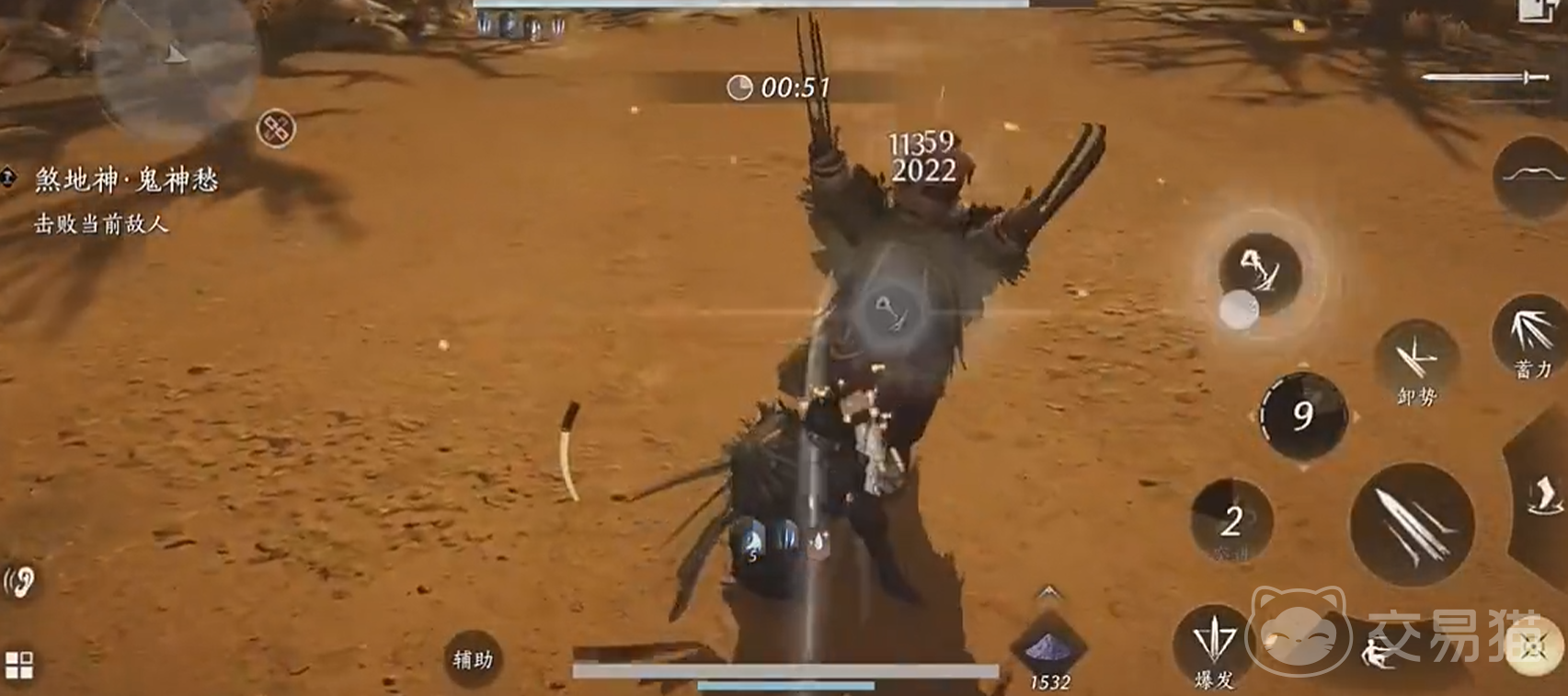 并且,煞地神有多种攻击技能,包括沙尘暴、蛤蟆功、车轮滚滚等。其中,沙尘暴技能具有吸附效果,玩家需要使用凌云踏等奇术及时打断。而蛤蟆功和车轮滚滚技能的判定比较难以把控,但贴近煞地神进行战斗时,它主要会使用跳起来攻击和一个三段攻击,玩家需要找到这两个招式的攻击节奏,进行卸势防御和反击。
