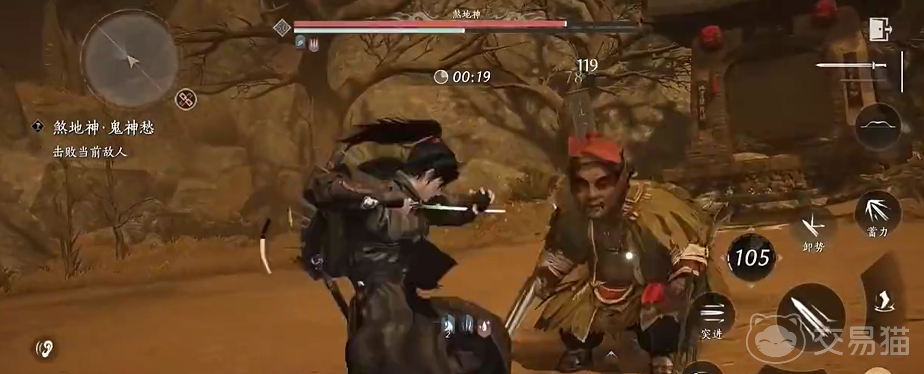 其次,煞地神的气竭速度非常快,玩家在挑战时需要特别注意。当煞地神跳到挑战区中部位置时,玩家可以迅速躲在树后,以规避其攻击。或者在战斗开始前,就直接躲在地图上标记的树后方,以寻找合适的反击时机。煞地神的攻击模式虽然迅猛,但它的耐力并不持久,因此玩家必须利用这一点,通过灵活的战术和策略来应对。在战斗中,玩家需要保持高度的警觉,观察煞地神的行动模式,以便在它气力不足时发起有效的反击。此外,玩家还可以利用环境中的其他元素,比如石头或障碍物,来进一步增加自己的存活率和攻击机会。