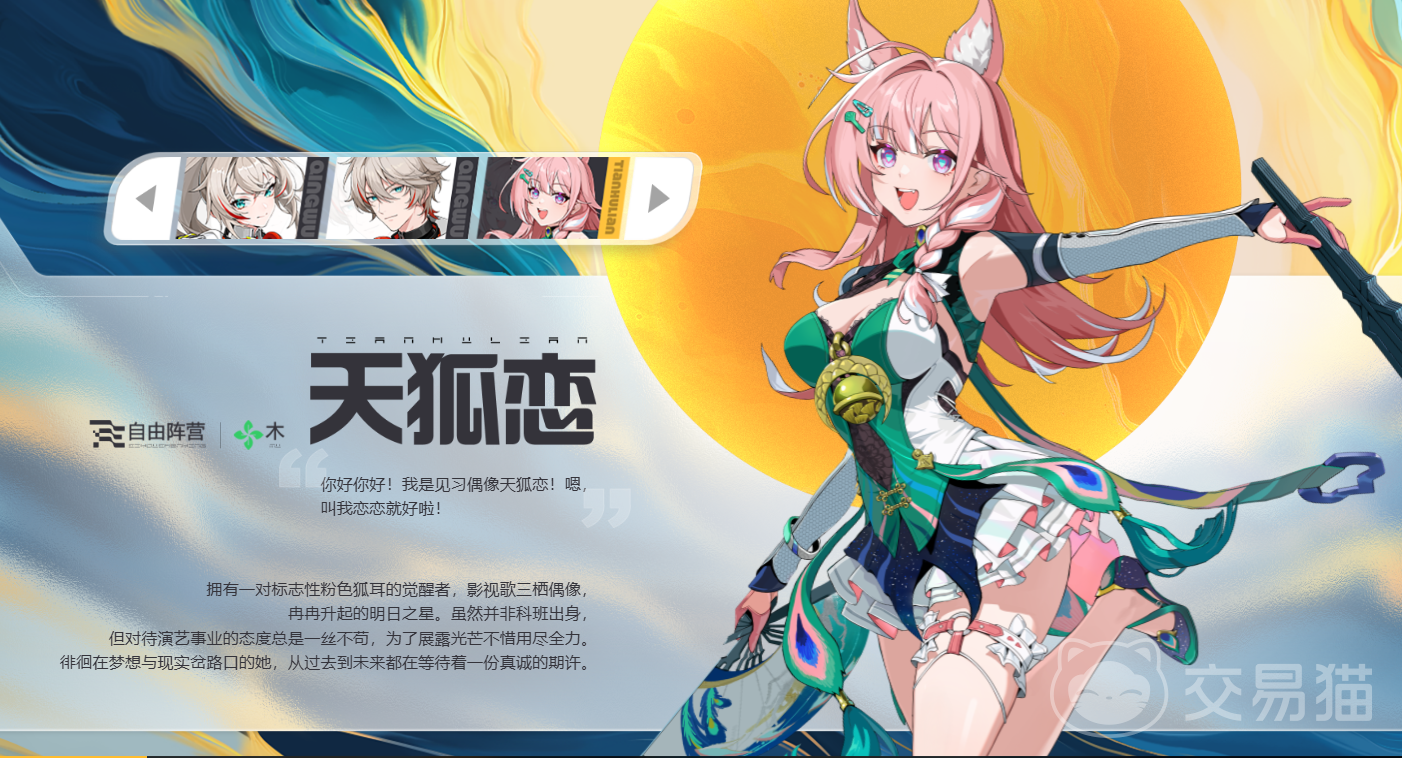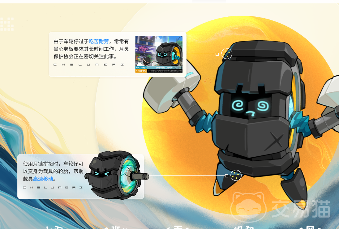 车轮仔是所有月灵中最勤劳刻苦的月灵,无论身处怎样的环境都可以配合人类进行工作,车轮仔还可以变身车轮,为载物提高速度。这款二游的武器就是依靠玩家获取游戏角色,获得游戏角色就是获得武器,比如游戏角色,天狐恋,有一对粉色狐耳,主要属性为木属性,它的武装类型力场,也是主力输出。