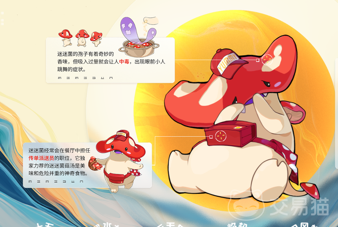 最后出场的是迷迷菌,它的性格特别的亲和友善,外表十分的可爱,但是它的孢子会散发香味,如果吸入过多就会导致中毒。