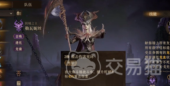 本期带来的是龙息神寂勒瓦妮丝技能介绍,龙息神寂中阴墟之主勒瓦妮丝以其极具压迫感的技能机制和鲜明的角色定位,成为战场上不可忽视的存在。作为一位掌控亡者与暗能量的强大角色,她的技能体系围绕“龙血”状态展开,兼具高爆发群体伤害与持续增益能力,尤其在大角斗场等持续战斗场景中表现尤为突出。