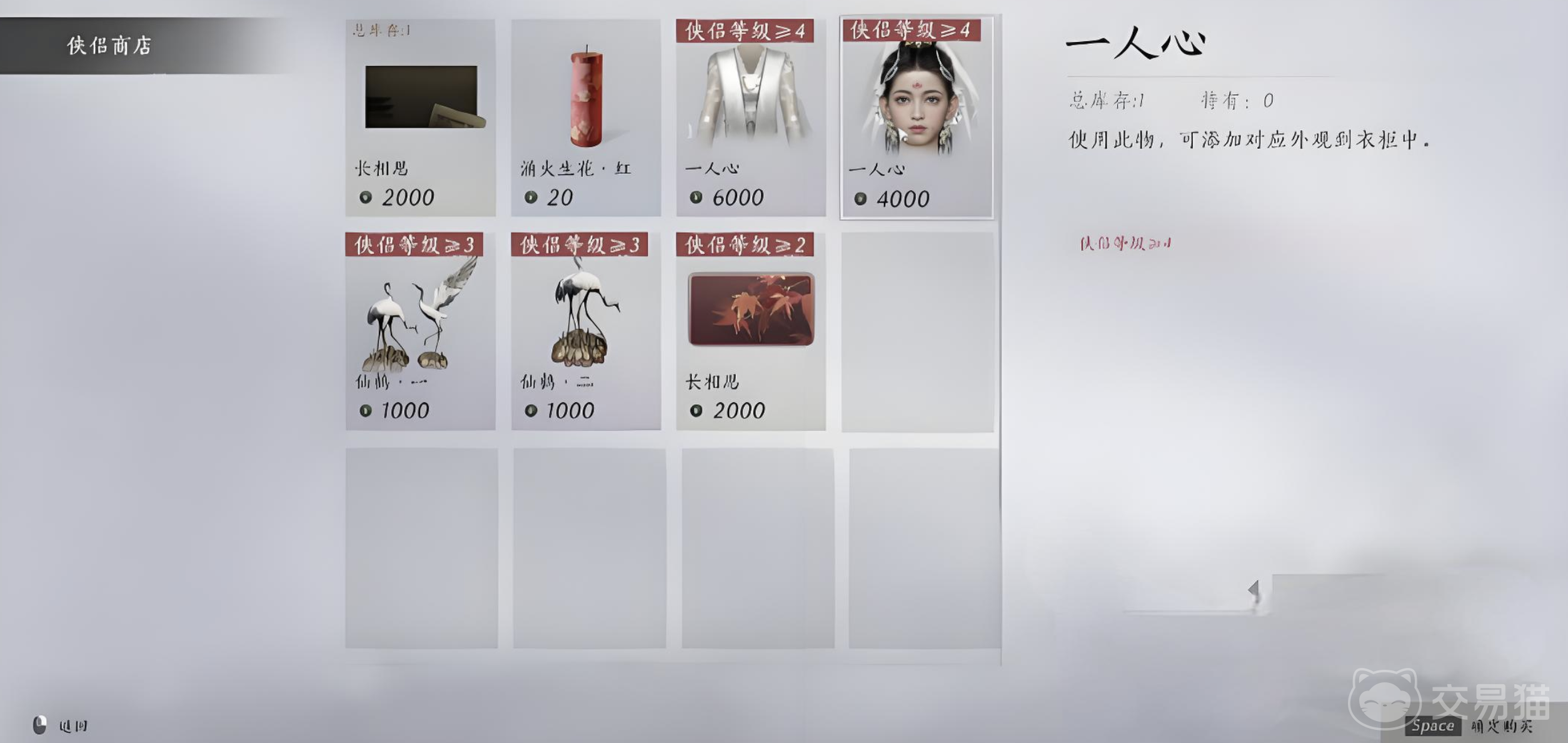 侠侣之间是有等级区分的,从一级“初见”慢慢升到七级“至契”,只要情缘值达到标准就能升级,每升一级系统都会送上奖励,像到了三级就能获得漂亮的时装。另外,结为侠侣后还会开启侠侣商店,在这儿消耗“侠侣值”就能兑换各种道具,甚至还有婚纱时装,让你们在江湖中也能美美的。