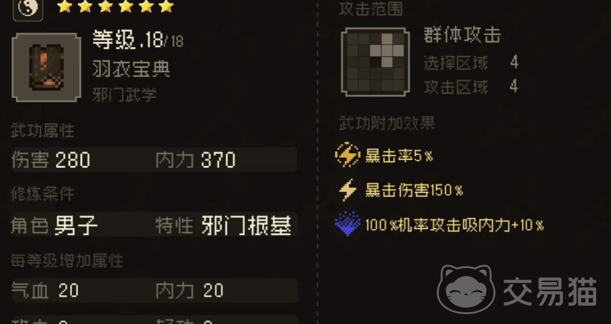 如若玩家在游戏的前期刷新出了祁门这一个属性词条,那么在后续可以获取更高的比例数值,并且还能够开通阴阳眼,作为孤儿的玩家,在此时就可以拜入到少林寺之中,学习有更高属性值的奇门功法,例如奇门遁甲或者是藏九归一等等。