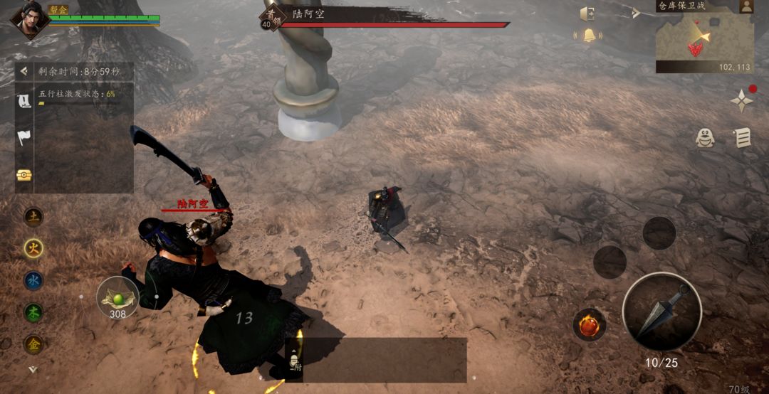 打首领的时候可以先去积累五行柱的能量,五行柱能量满了对敌人造成的伤害直接加倍,若是首领到达了五行柱,能量还没积累足够,那么五行柱中的能量过转移到下面的五行柱中。