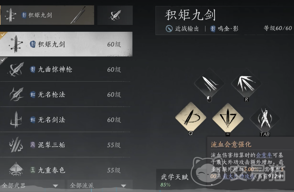 当你成功完成这一操作后,积矩九剑的技能就会归你所有。别这门技能并不会在刚学到时就达到满级,要想让它发挥出更强的威力,后续的升级可不能忽视。