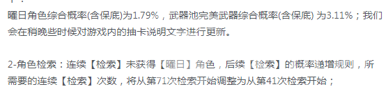 在游戏中玩家就可以看到有角色检索系统。玩家在抽卡时连续好几次都没有得到曜日角色。而从第41次检索开始,后期就会逐渐的增加倍率,因此玩家就需要保持耐心,不需要太长时间即可满足需求。