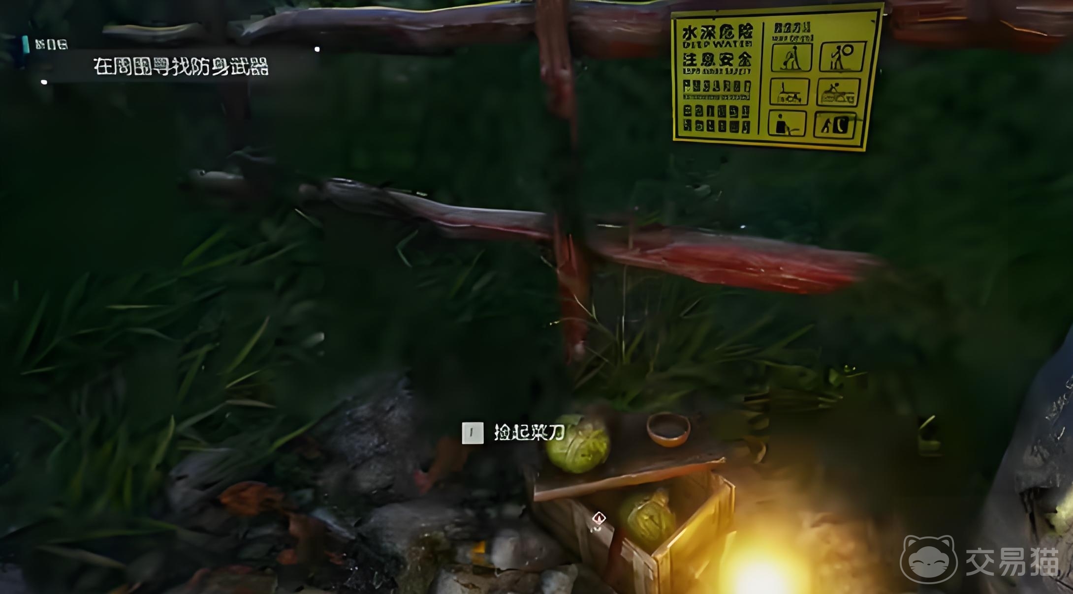 进入到危机四伏的全新剧情后,我们先是要看一段动画,看完动画以后剧情就会被触发,根据系统发送的消息提示我们在左边位置可以看到一把菜刀,把菜刀给拿起来。