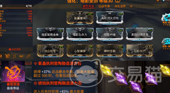 在战甲配卡方面,如果想要有效实现出暴击的几率,就需要搭配对应的技能。这一个角色本身就会有三个暗影槽,建议全部都需要装上。另外尽可能增加蓝量上限,如此就能有效触发紫色石头所造成的额外爆伤,还能迅速的提升抗性。