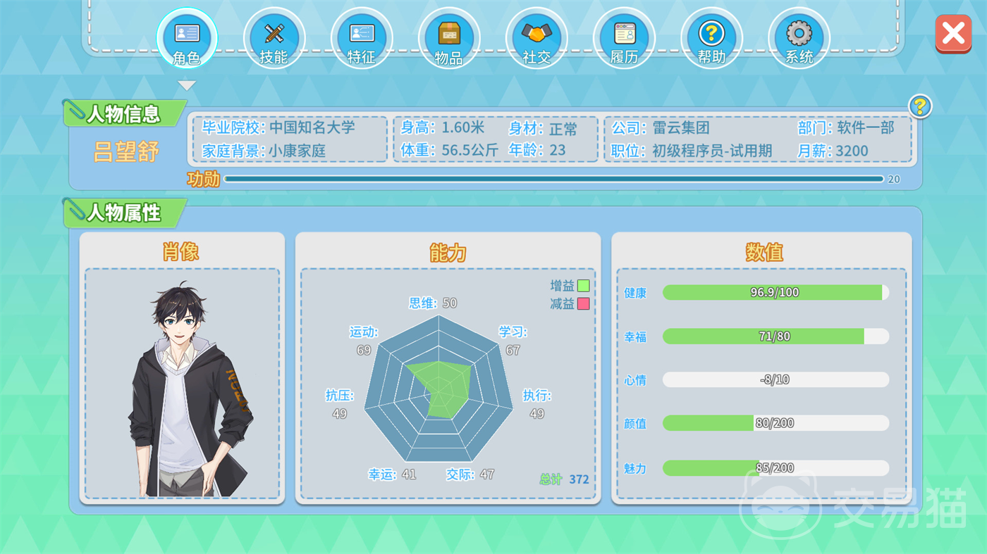 推荐选择软件工程专业,这不仅能为技能提升提供良好基础,还能在后续的副业发展中占据优势,尤其在高收入的外包工作中能快速见效。同时,初始目标可选择“海王+奖学金”,前者提升行动力上限以增加日常安排的灵活性,后者强化技能经验增长,为早期发展奠定良好基础。