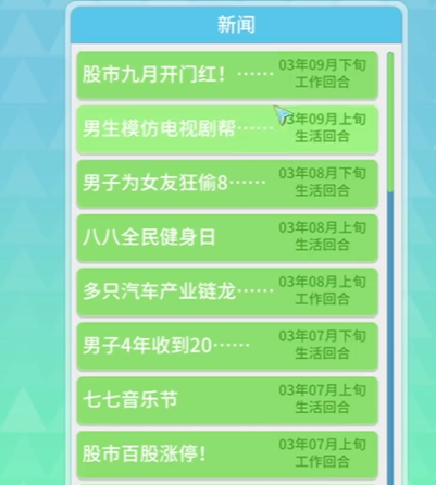 游戏中的时间回溯能力为炒股增加了一层策略性。玩家可以利用这一能力提前查看未来的股市行情,从而优化今天的投资决策。这种机制为玩家提供了一个独特的优势,但需要注意的是,时间回溯能力并非万能,股市行情依然可能受到其他因素的影响而变化。因此,即使拥有这一能力,玩家也应谨慎操作,避免过度依赖。
