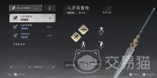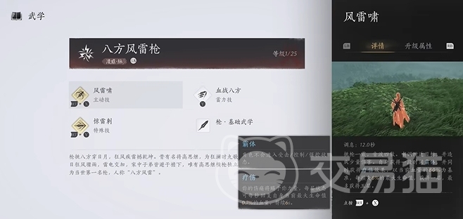 八方风雷枪法则更加注重防御与生存能力,被定位为承伤类武学,适用于那些愿意站在前线上挡下敌人进攻,同时对敌人造成伤害的玩家。八方风雷枪法的技能如下: