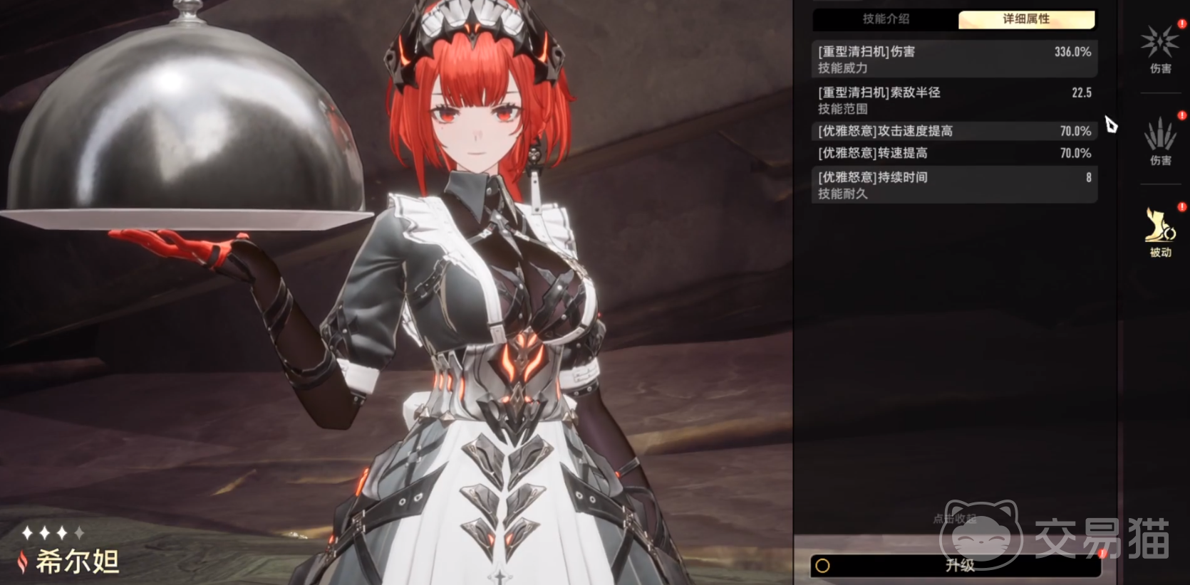自动保洁:希尔妲携带2座[重型清扫机],这些清扫机会自动寻找周围的敌人并进行瞄准,每隔3秒射击一次,造成火属性伤害。闪避时,她将远程武器的弹夹装填至最大值,并在一段时间内获得[优雅怒意]。该效果可以提升[清扫机]的攻击速度和[高温清扫]的转速。