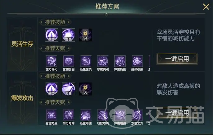 当队伍中缺少一名具有突进能力的刺客时,那么爆发攻击流派就非常合适了,能让魔剑士拥有更高的爆发输出能力,能在瞬间打出高额的损伤,作为全能的战士,不论是处于什么时机,都会有良好的发展的,值得选择。