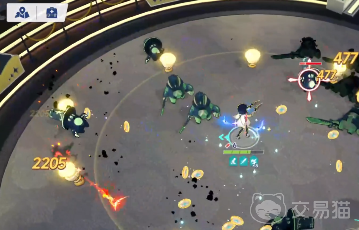接着可以遇到特殊事件,必须选择增加伤害的buff。到第5层就会遇到很多强敌,全是一些灯泡,不要让他们接近我们。因为爆炸之后造成的伤害挺高。就会出现一大堆的绿色怪物,将队友召唤出来之后可以一同将他们消灭。