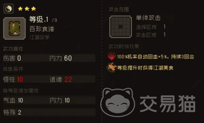 不离杯:每日把酒不离手,酒量虽高,却伤身伤内力。酒艺提升30,内力降低2%。