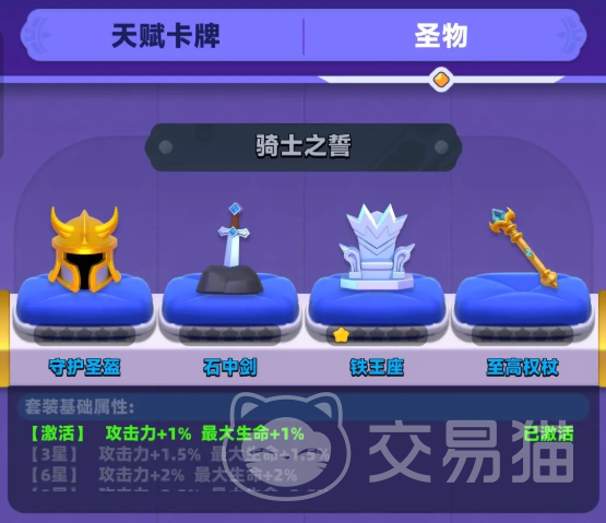 虽然装备没有套装效果,但圣物有,圣物是一种养成系统,主要是提供加成和属性,凑齐特定的圣物也有套装加成,品质从蓝到红有四个稀有度,主要是通过祈愿抽。
