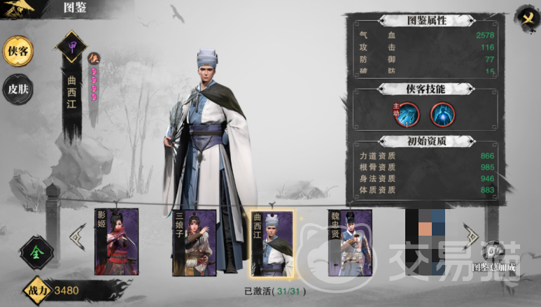 曲西江是天机馆馆主,武器是天机扇,他在七里泷的时候认识了还在少女时期的钱玉儿,非常喜欢一度想要帮她更换贱籍、脱离苦海。
