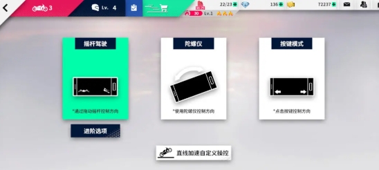 目前游戏里给大家提供的转向操控方式有三种,第一种是摇杆形式,适用于大多数小伙伴。第二种是陀螺仪模式,适合一些技术比较好的小伙伴。第三个就是按键模式了,如果平时小伙伴们的手不能长时间保持在屏幕上滑动的话,就可以试试第三种方式,根据自己的习惯选择就好,找到了适合自己的,大家的飙车技术就会提升不少。