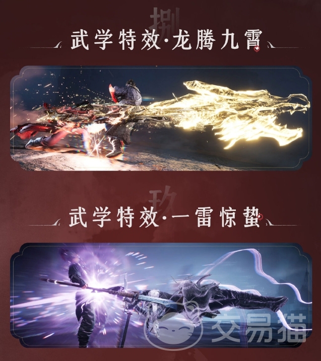3、武功特效。在新春活动中也推出了一些功夫的限定特效【龙腾九霄】、【一雷惊蛰】,这样玩家在新春活动期间在释放技能时还能看到神奇的效果;