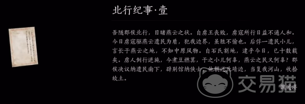 紧接着天河弃侠任务,让玩家了解了这个时候的时间线。事关游戏主角也开始了,这个时候又有了新的政权——南唐。在太原,刘知远建立“汉”朝,但是有忌惮手底下的大将,怕被其反杀,至此大将反叛推翻汉。这时郭威带兵直抵契丹发动攻击,创建后周,其后传位柴荣。柴荣南征北战,在位5年,他在位期间涌现了一代名仕——魏道济。