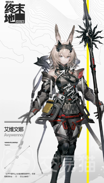 艾维文娜是一个自信开朗的角色,他平常的任务就是处理各种社交关系。不过为了在最大的舞台中发挥出他的社交能力,他就来到了终末地的商会中工作。技能属性为追击,也就是说用了一次技能后,下一次主动技能将变成二连击,所以是个越打越猛的角色。
