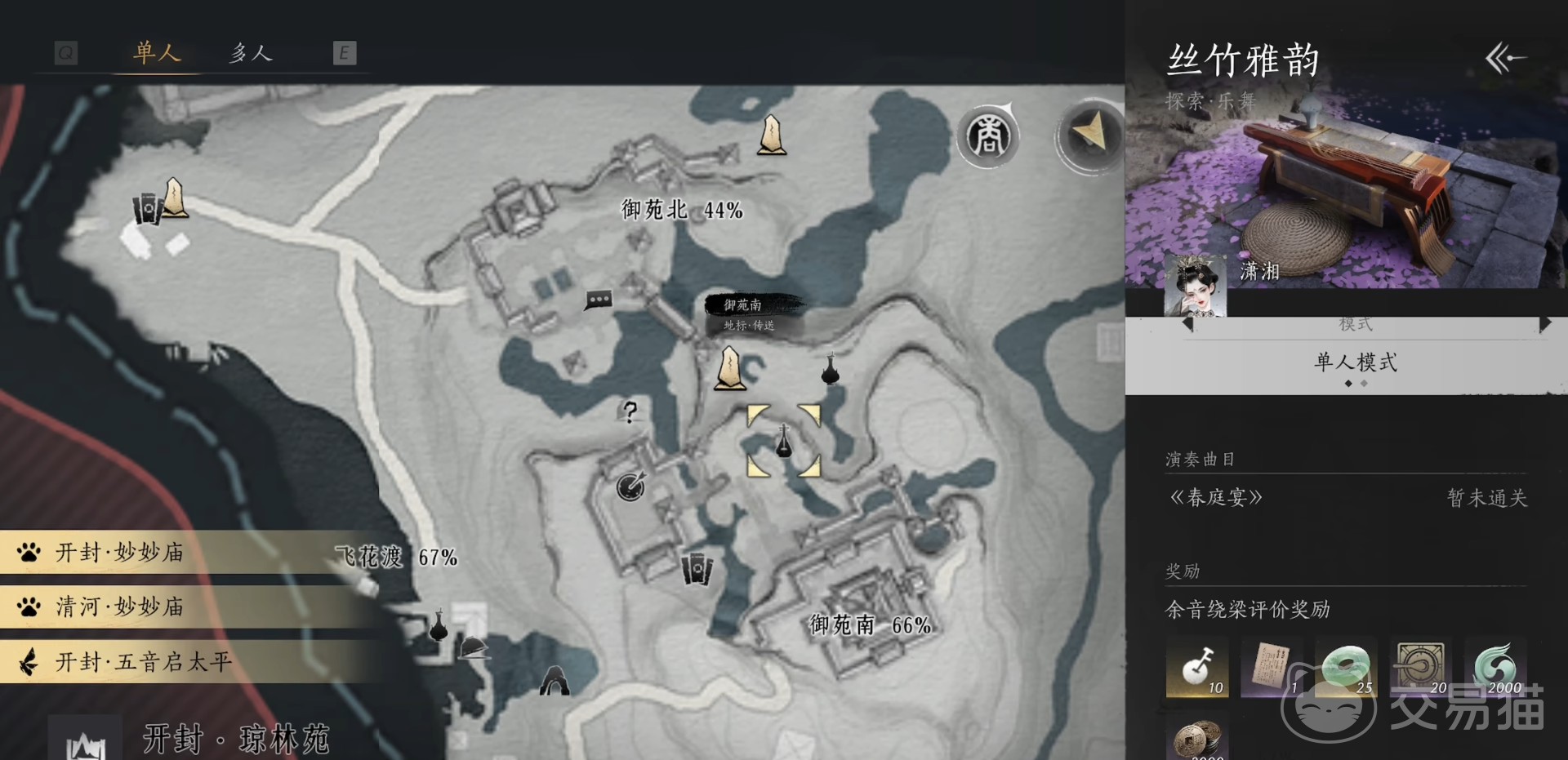 除了这三张乐谱,还有一张额外的乐谱需要大家去获取。各位小伙伴可以前往御苑南的传送点,找到NPC潇湘,聆听她演奏《春庭乐》。这张乐谱虽然不是解锁古琴所必须的,但获取过程也并不复杂,完成后还能为你的乐谱收藏添上一笔。