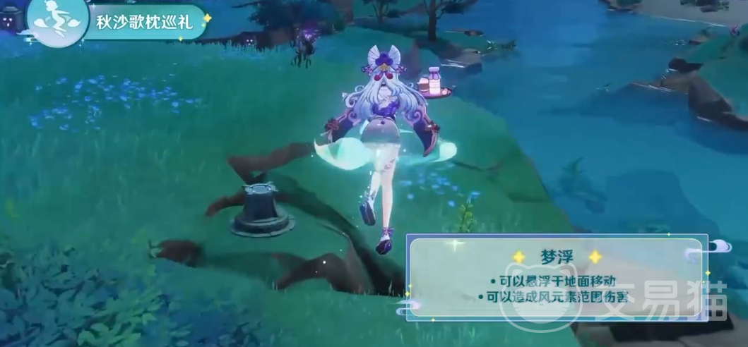 普通攻击”梦我梦心”,在战斗时她会挥动扇子掀起凉风,让对方承受对应的元素损伤。元素战技”秋沙歌巡礼”,释放元素战技后,她会给自己编织“美梦回忆”,并让自己进入浮梦状态,这种状态时的她能悬浮在地面进行移动,并对敌人造成风伤。